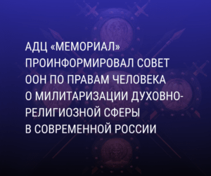 АДЦ “Мемориал” направил аналитический материал “Религия и убеждения в условиях войны: Комментарии к ситуации в Российской Федерации в связи с агрессией России против Украины” в рамках подготовки доклада Верховного комиссара ООН по правам человека “О борьбе с нетерпимостью на основе…