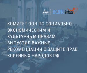 По рассмотрении государственного доклада РФ и альтернативных материалов, предоставленных гражданским обществом, Комитет ООН по социально-экономическим и культурным правам выпустил важные рекомендации, ряд которых касается защиты прав коренных народов РФ. Этой теме был посвящен альтернативный доклад Института экологии и антропологии (INFOE),…