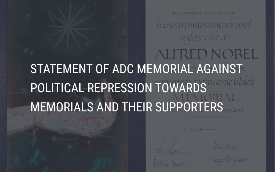 Statement of Anti-Discrimination Centre Memorial against political repression towards Memorials and their supporters