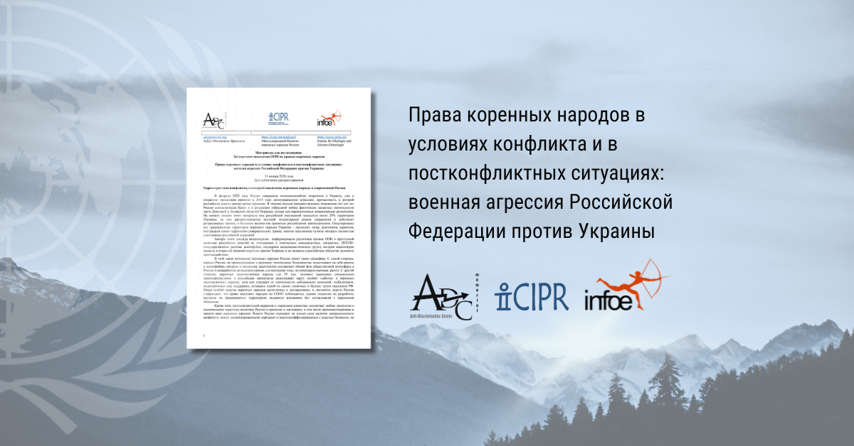 Международный Комитет коренных народов России (ICIPR), Institut für Ökologie und Aktions—Ethnologie и Антидискриминационный центр «Мемориал» Брюссель подали материалы для ежегодного исследования Экспертного механизма ООН по правам коренных народов, посвящённого положению коренных народов в условиях вооружённого конфликта и в постконфликтных ситуациях в контексте военной агрессии Российской Федерации против Украины.