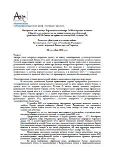 АДЦ “Мемориал” направил аналитический материал “Религия и убеждения в условиях войны: Комментарии к ситуации в Российской Федерации в связи с агрессией России против Украины” в рамках подготовки доклада Верховного комиссара ООН по правам человека “О борьбе с нетерпимостью на основе…